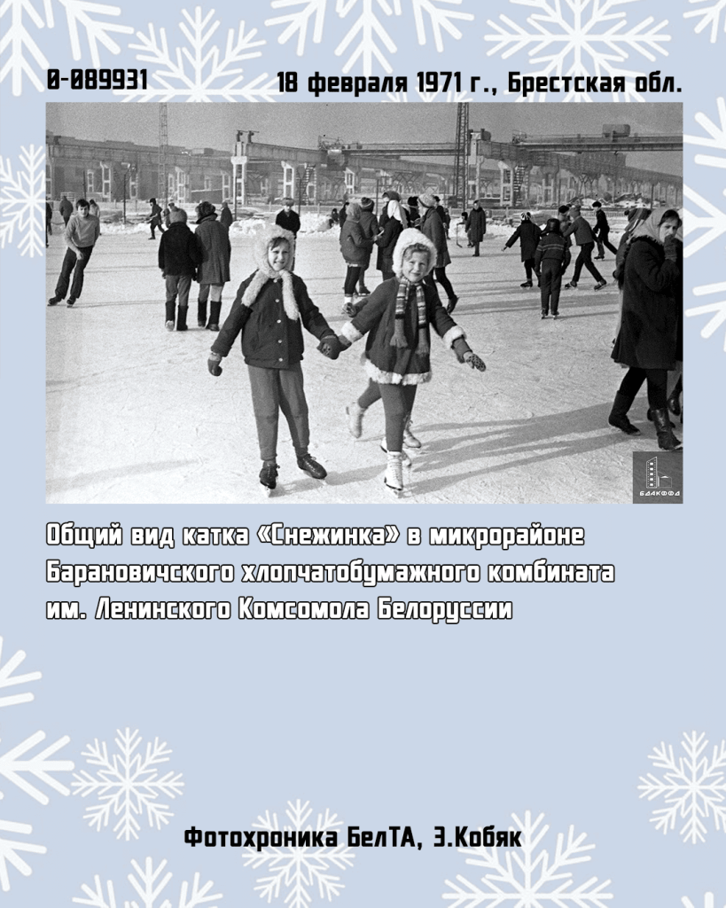 Белорусский государственный архив кинофотофонодокументов готовит виртуальную выставку «Зимние забавы» для размещения на сайте «Архивы Беларуси» – http://archives.gov.by/home/organy-arhivnogo-dela-i-deloproizvodstva-i-sistema-gosudarstvennyh-arhivnyh-uchrezhdenij/respublikanskie-arhivnye-uchrezhdeniya/uchrezhdenie-belorusskij-gosudarstvennyj-arhiv-kinofotofonodokumentov-bgakffd и на сайте архива www.bgakffd.by.