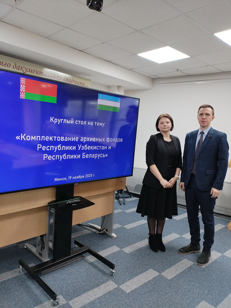 19 ноября 2025 г. на базе Национального архива Республики Беларусь (далее – НАРБ) состоялся совместный белорусско — узбекистанский круглый стол «Комплектование архивных фондов Республики Узбекистан и Республики Беларусь». Это мероприятие стало первым в рамках выполнения Дорожной карты между архивистами Республики Беларусь и Республики Узбекистан, подписанной осенью 2025 г.