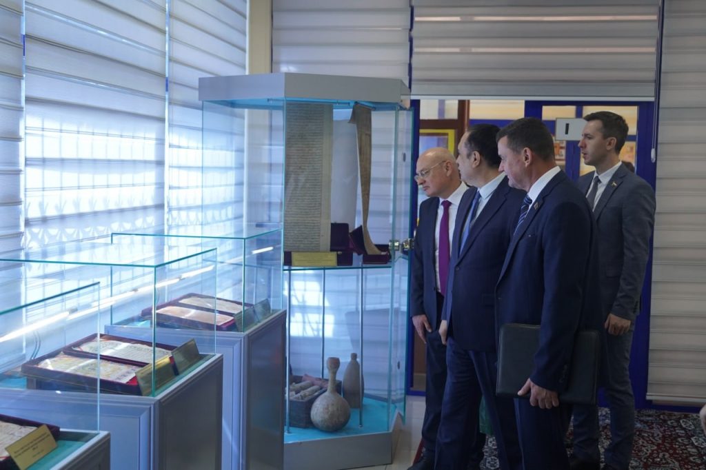 Белорусская делегация во время посещения выставочного зала Национального архива Узбекистана
