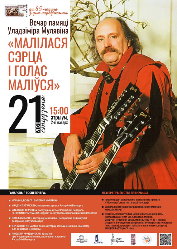 В Национальной библиотеке Республики Беларусь 21 января 2026 года прошел вечер памяти Владимира Мулявина «Молилось сердце и голос молился», посвященный 85-летию со дня рождения песняра.