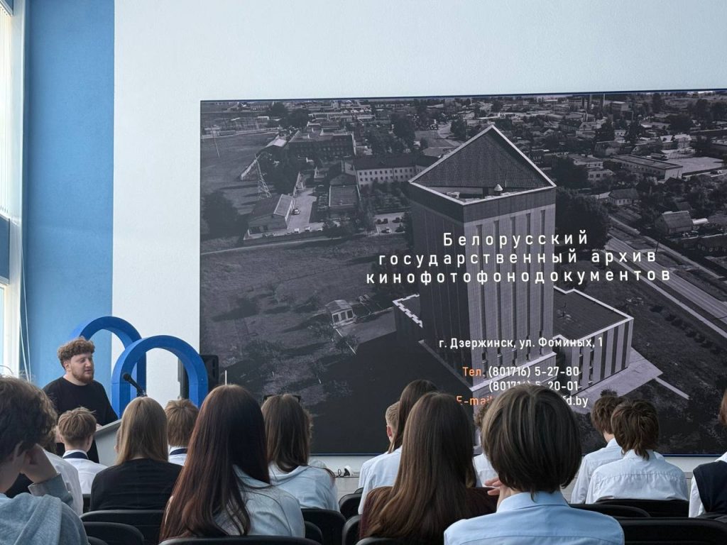 22 апреля 2026 г. сотрудник отдела использования информации и документации Белорусского государственного архива кинофотофонодокументов, Кучер Андрей Валерьевич, посетил Среднюю школу №2 города Заславля в рамках республиканской акции «Архивы — школе». Целью визита было познакомить учеников с работой архива и важностью сохранения исторического наследия.