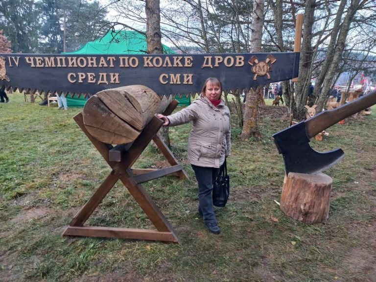 7 ноября работники БГАКФФД посетили IV чемпионат по колке дров среди СМИ в составе делегации Дзержинского района, который прошел на берегу водохранилища Вяча.